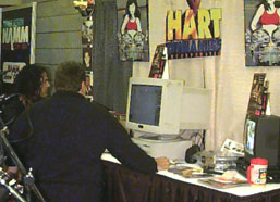 More Hardware: Apogee, notorious for high end studio electronics, caught our attention with their product line and the Macs tucked here and there at their booth. Yamaha spokespersons are playing it pretty close to the vest as to info on the implementation of mLan, their standard for music & multimedia over the IEEE-1394 (FireWire) protocol bus, on soon to be released products. One unnamed source in the pro audio division at Yamaha tells us that there will be one or more products (keyboard, most likely) that has the hardware provision inside for an mLan card to be added. Our source continued to point out no plans have been made to make this feature obvious or available to the consumer for "a while." Not much to go on there; but it does confirm Yamaha is going ahead with it's 1394 plans, albeit cautiously. Find out more about FireWire, and our biased interest in the protocol, at MacRocks.com's FireWatch section.